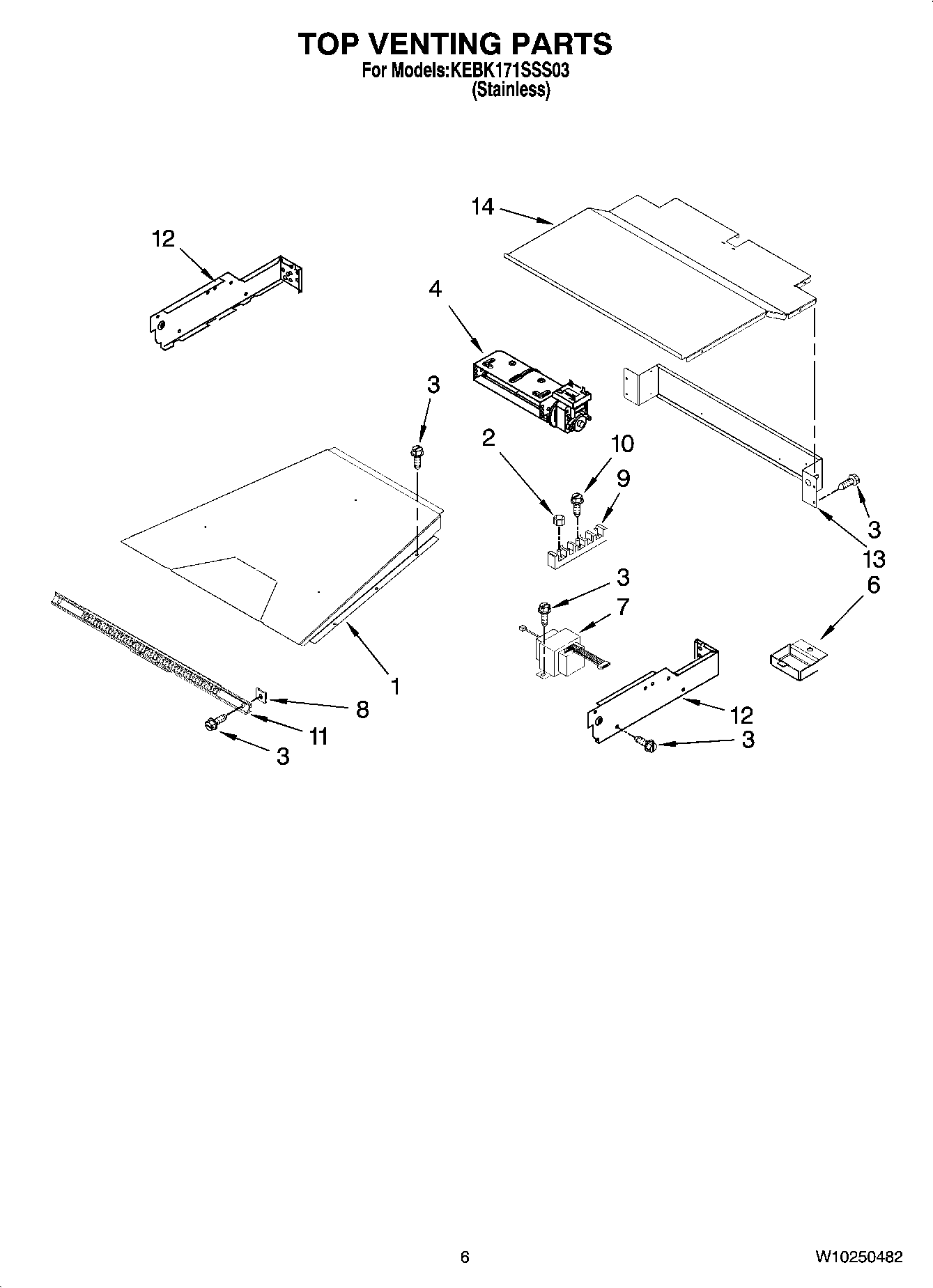 KEBK171SSS03 05 – TOP VENTING PARTS, OPTIONAL PARTS (NOT INCLUDED)