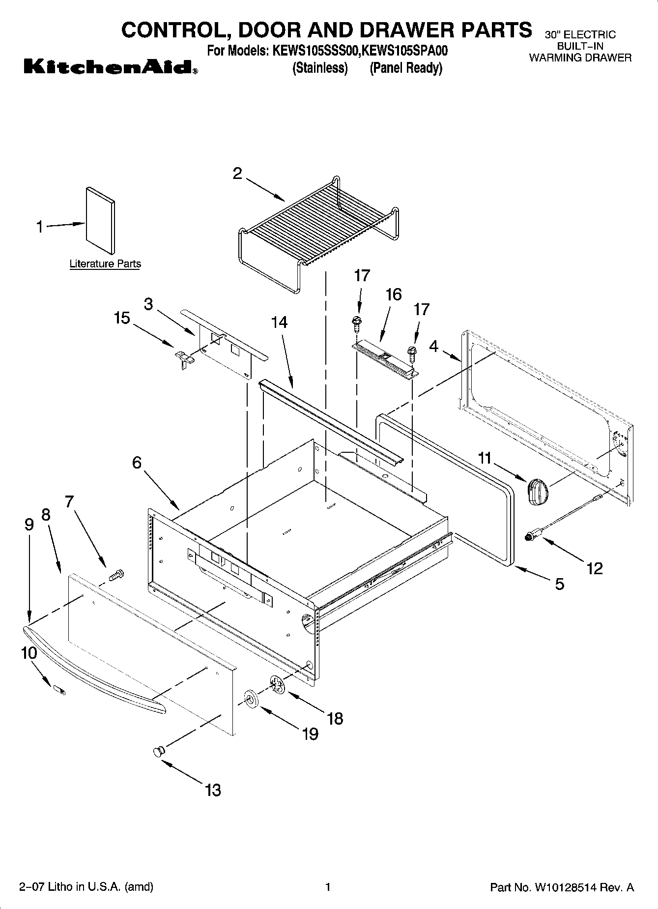KEWS105SPA00 01 – CONTROL, DOOR AND DRAWER PARTS