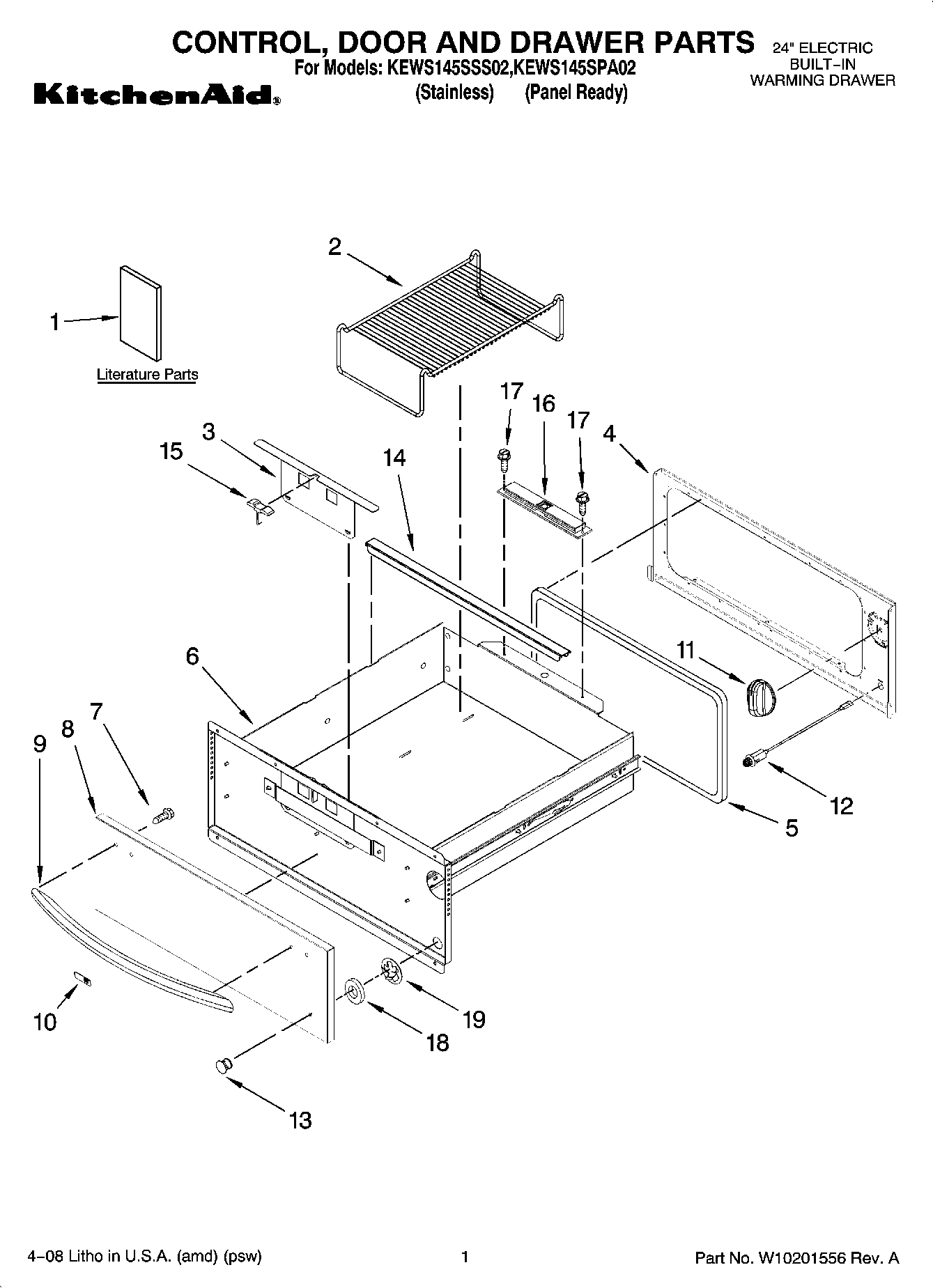 KEWS145SSS02 01 – CONTROL, DOOR AND DRAWER PARTS