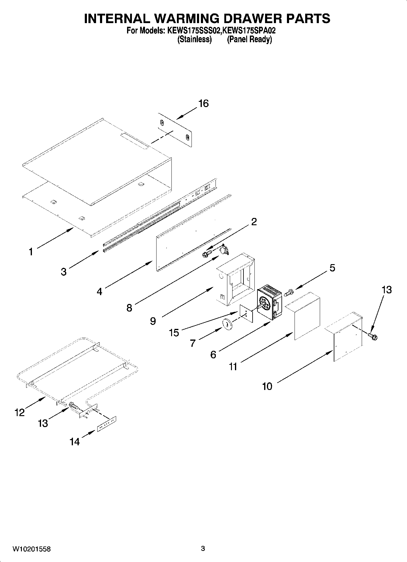 KEWS175SSS02 02 – INTERNAL WARMING DRAWER PARTS