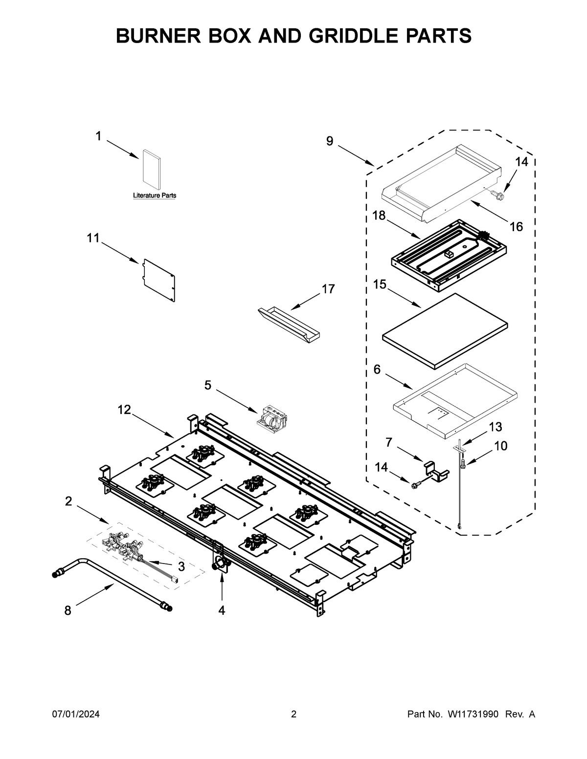 KFGC558JMB07 02 – BURNER BOX AND GRIDDLE PARTS
