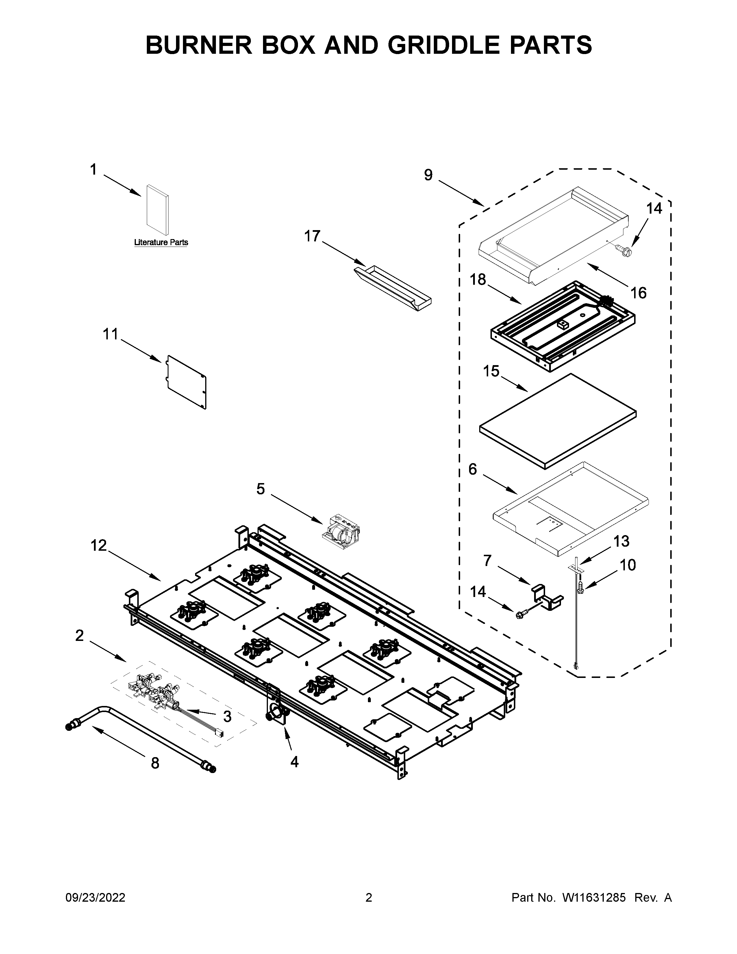 KFGC558JSS05 02 – BURNER BOX AND GRIDDLE PARTS