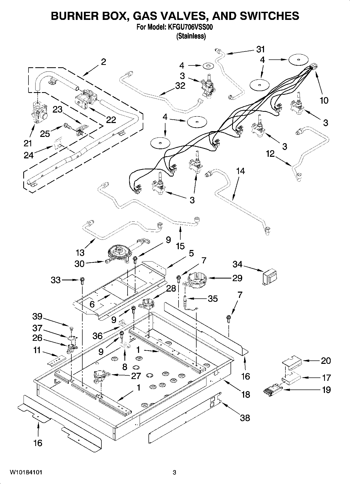 KFGU706VSS00 02 – BURNER BOX, GAS VALVES, AND SWITCHES, OPTIONAL PARTS (NOT INCLUDED)