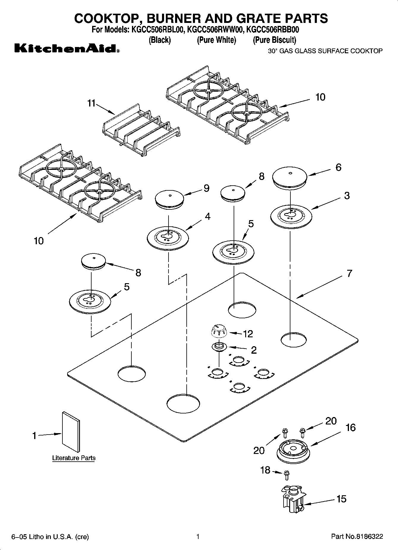 KGCC506RWW00 01 – COOKTOP, BURNER AND GRATE PARTS