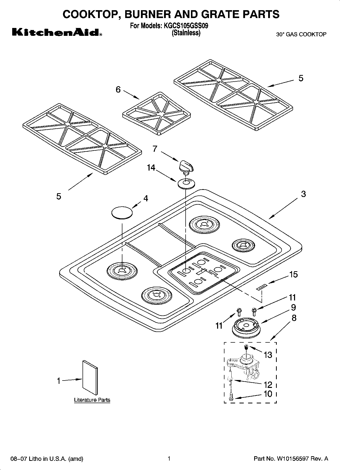 KGCS105GSS09 01 – COOKTOP, BURNER AND GRATE PARTS