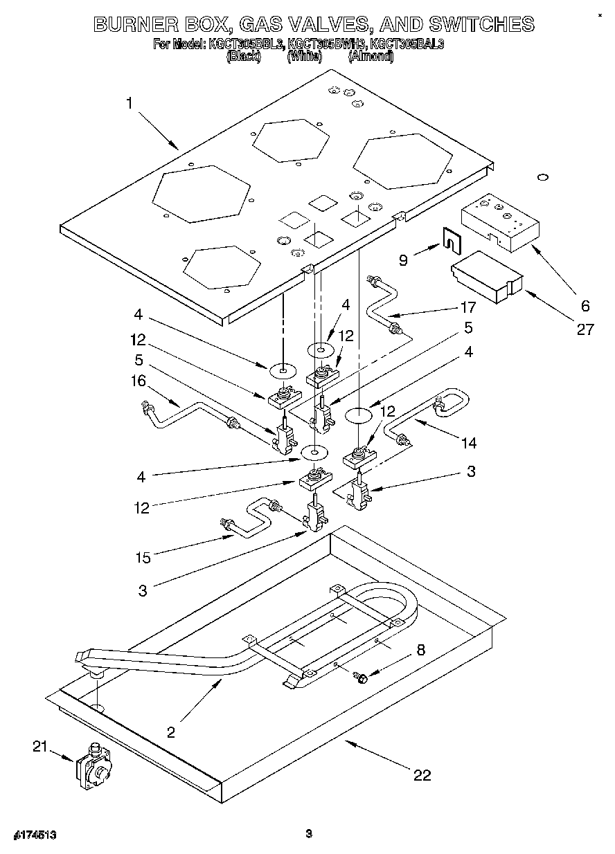 KGCT305BAL3 04 – BURNER BOX, GAS VALVES, AND SWITCHES