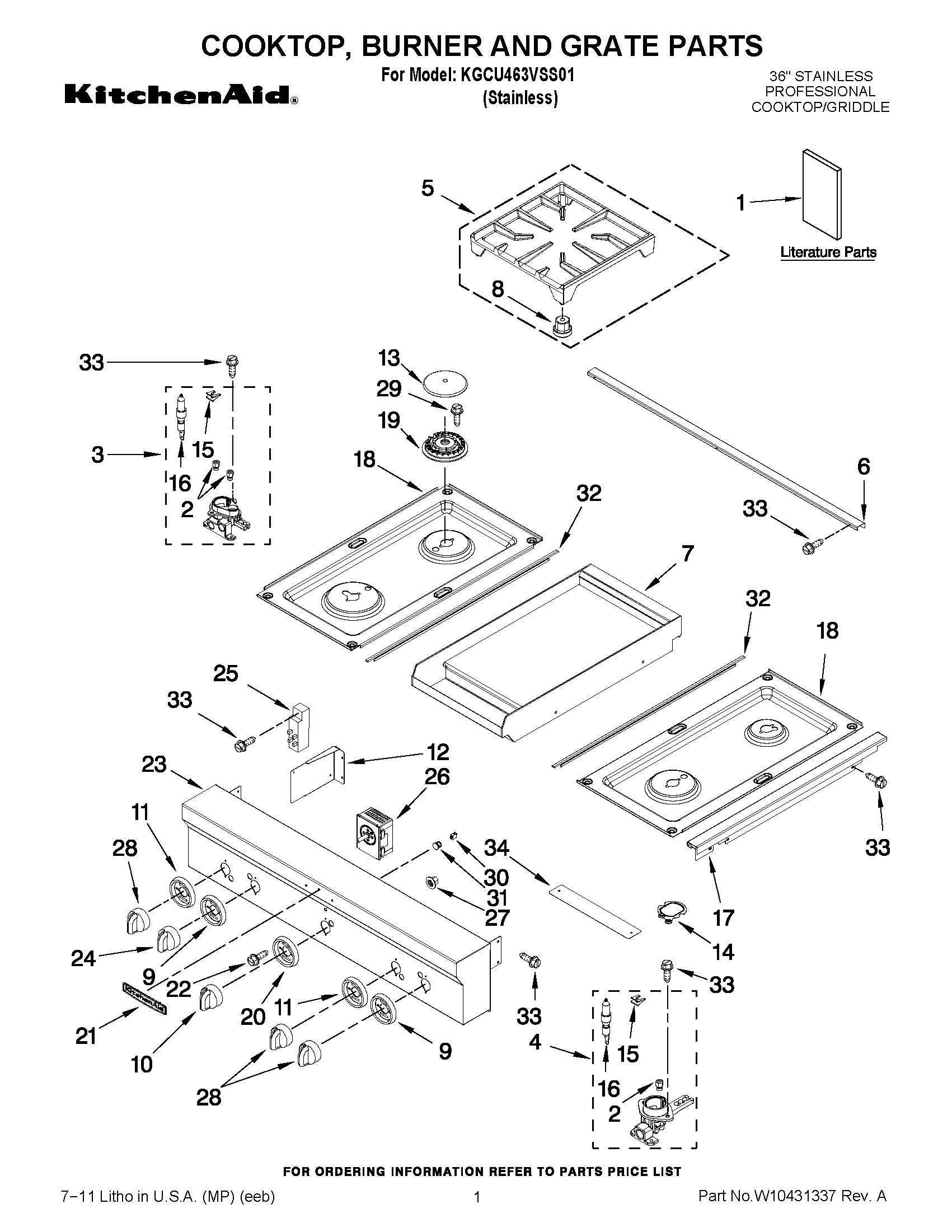 KGCU463VSS01 01 – COOKTOP, BURNER AND GRATE PARTS