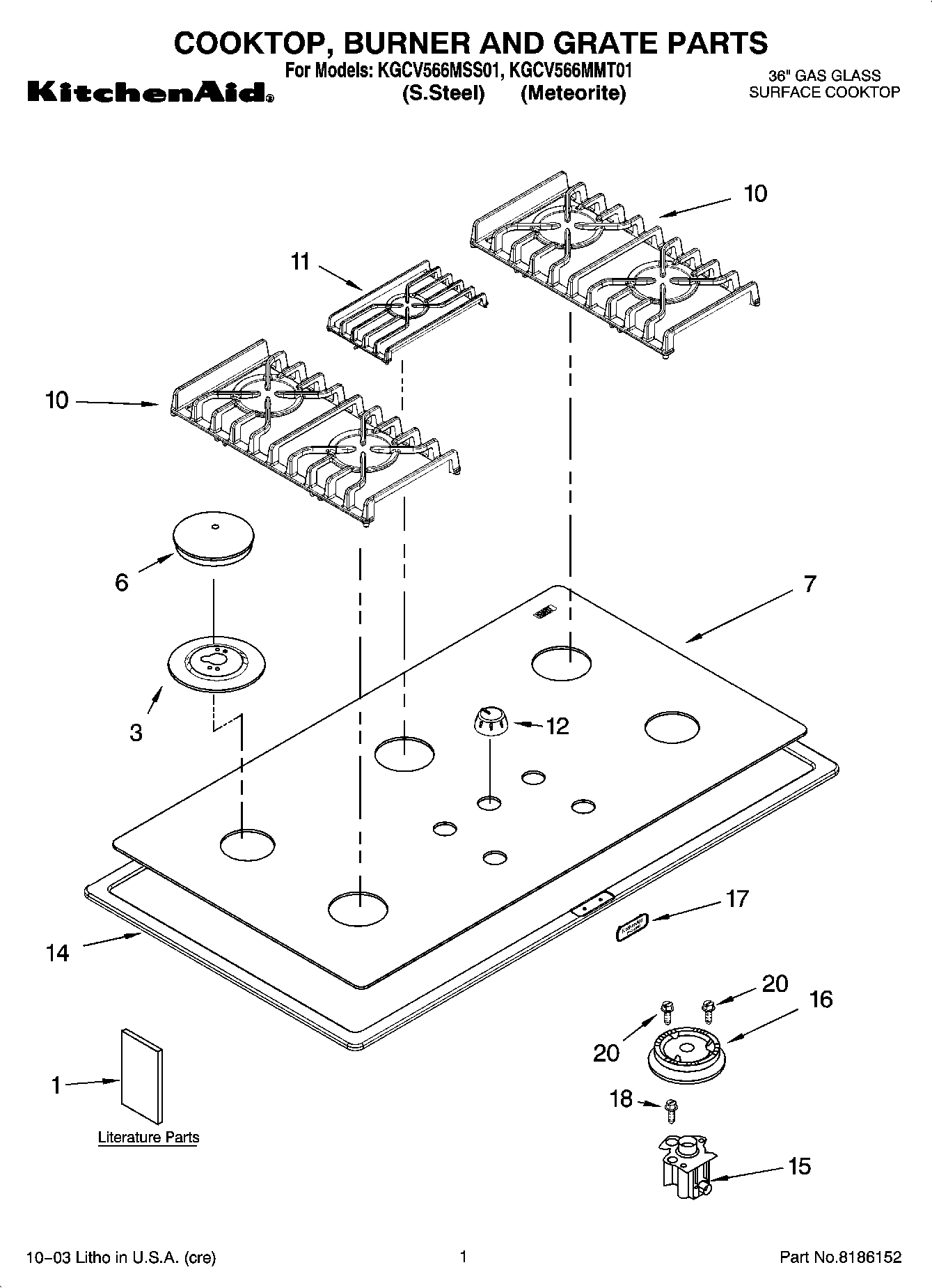 KGCV566MSS01 01 – COOKTOP, BURNER AND GRATE PARTS