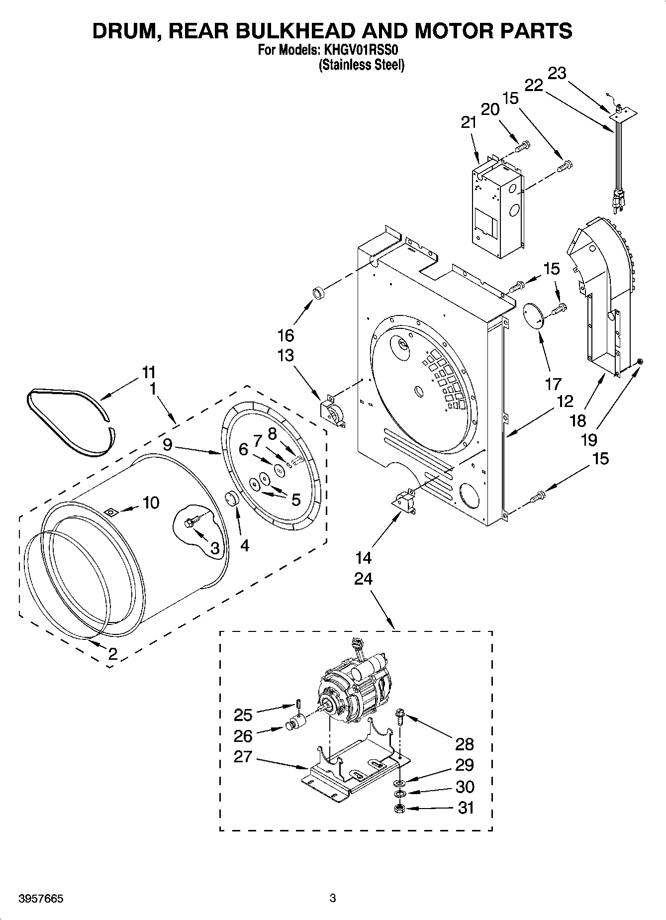 KHGV01RSS0 02 – DRUM, REAR BULKHEAD AND MOTOR PARTS