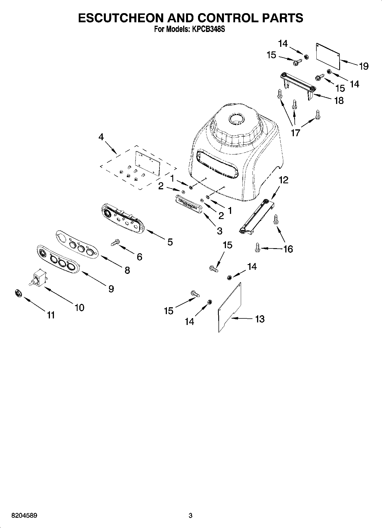 KPCB348S 03 – ESCUTCHEON AND CONTROL PARTS