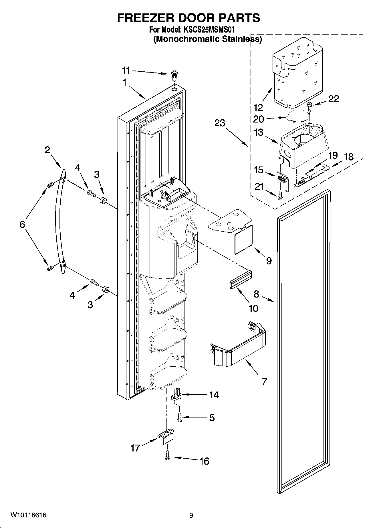 Freezer Door (Includes 8 And Dispenser Front Parts) (Monochromatic Stainless)