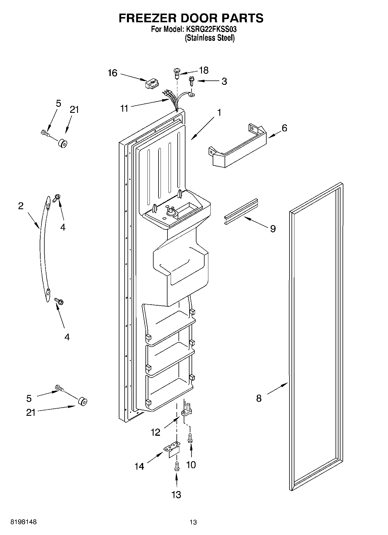 Freezer Door (Includes Item No.8 And Dispenser Front Parts) (Stainless Steel)