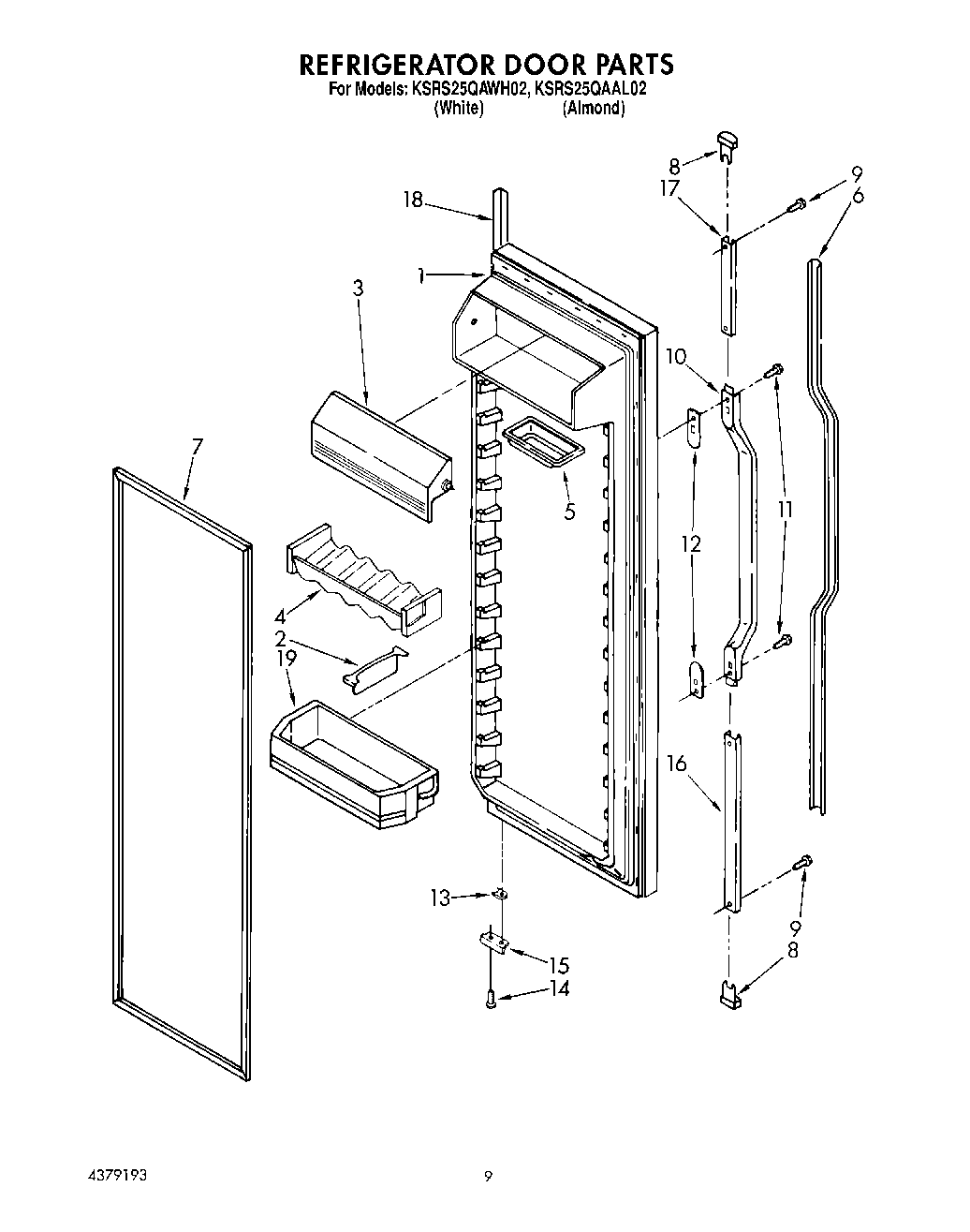 1Refrigerator Door (Includes No.7) (Almond)
