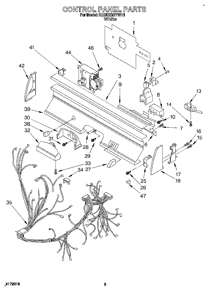 KUDD230YWH1 03 – CONTROL PANEL, LIT/OPTIONAL