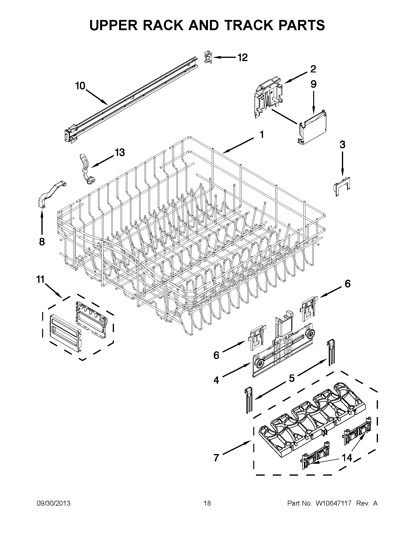 KUDC10IXWH4 09 – UPPER RACK AND TRACK PARTS→