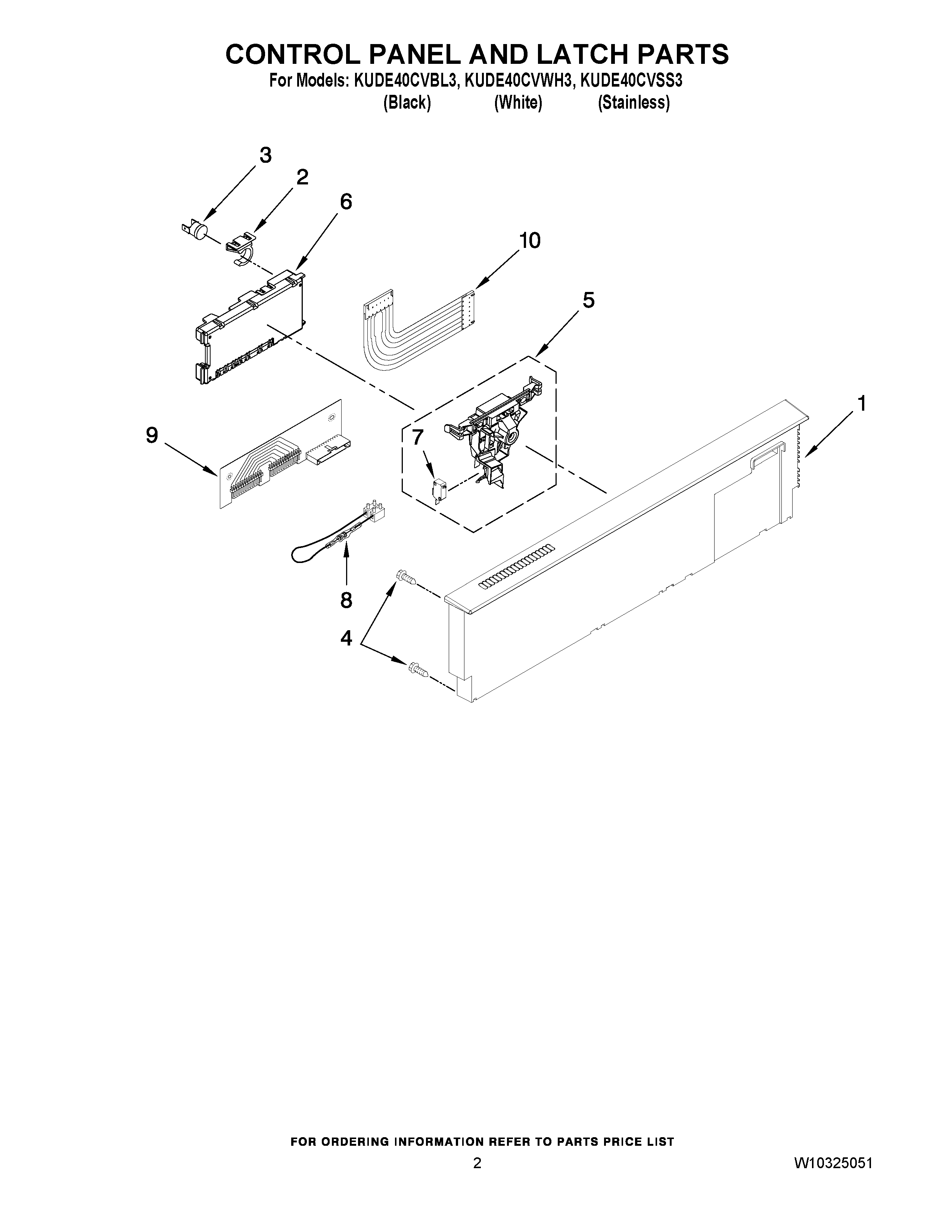 KUDE40CVWH3 02 – CONTROL PANEL AND LATCH PARTS