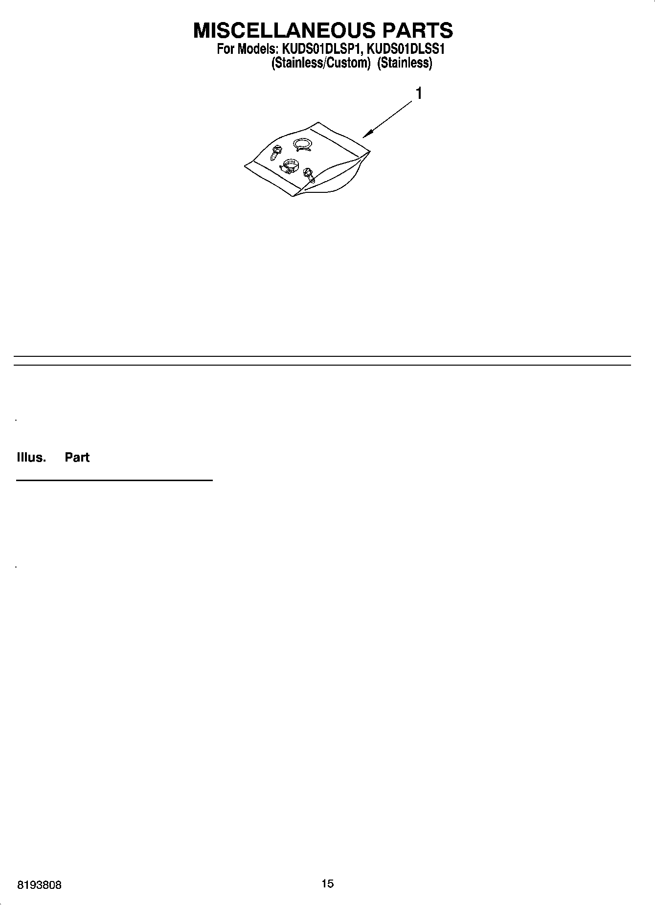 KUDS01DLSP1 12 – MISCELLANEOUS PARTS OPTIONAL PARTS (NOT INCLUDED)