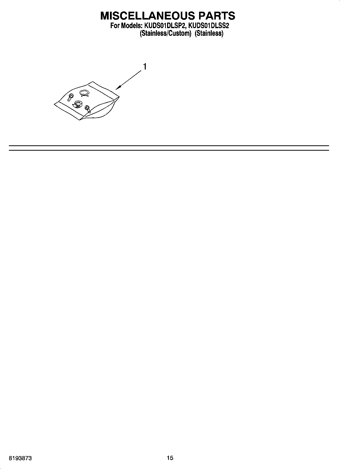 KUDS01DLSS2 12 – MISCELLANEOUS PARTS OPTIONAL PARTS (NOT INCLUDED)