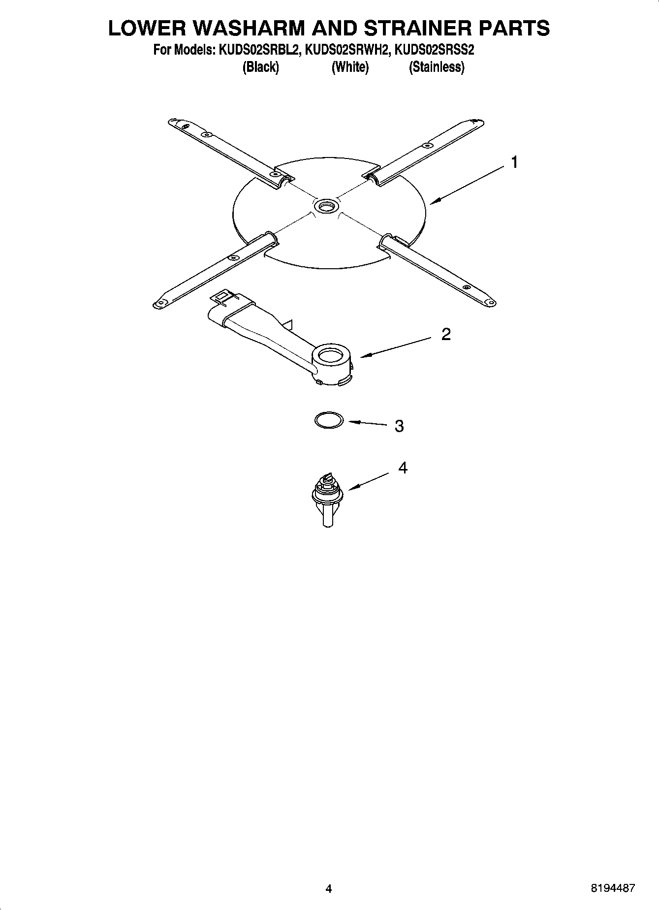 KUDS02SRWH2 04 – LOWER WASHARM AND STRAINER PARTS
