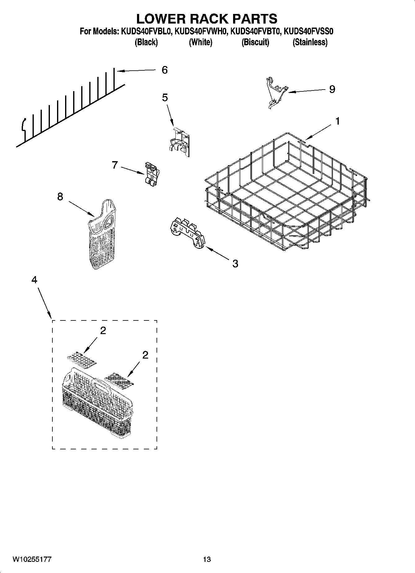 KUDS40FVBL0 10 – LOWER RACK PARTS