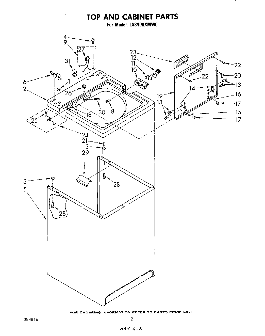 LA3400XMW0 02 – TOP AND CABINET , LITERATURE AND OPTIONAL