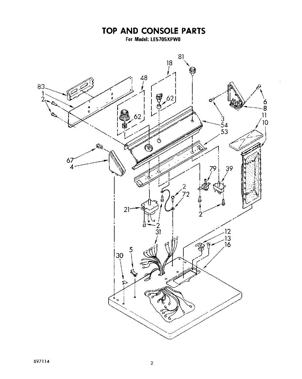 LE5705XPW0 02 – TOP AND CONSOLE, LIT/OPTIONAL
