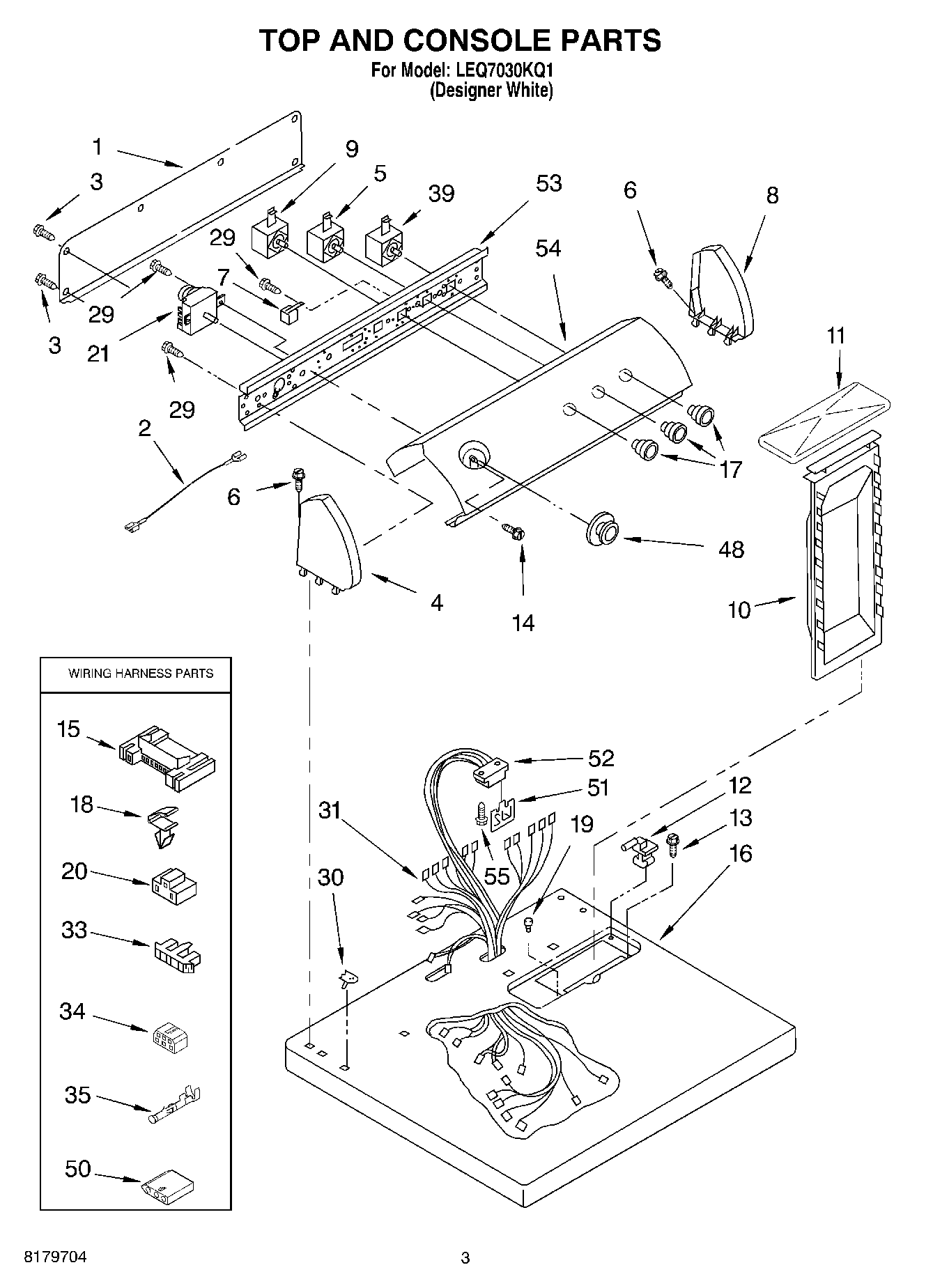 LER3624PQ0 01 – TOP AND CONSOLE PARTS OPTIONAL PARTS (NOT INCLUDED)