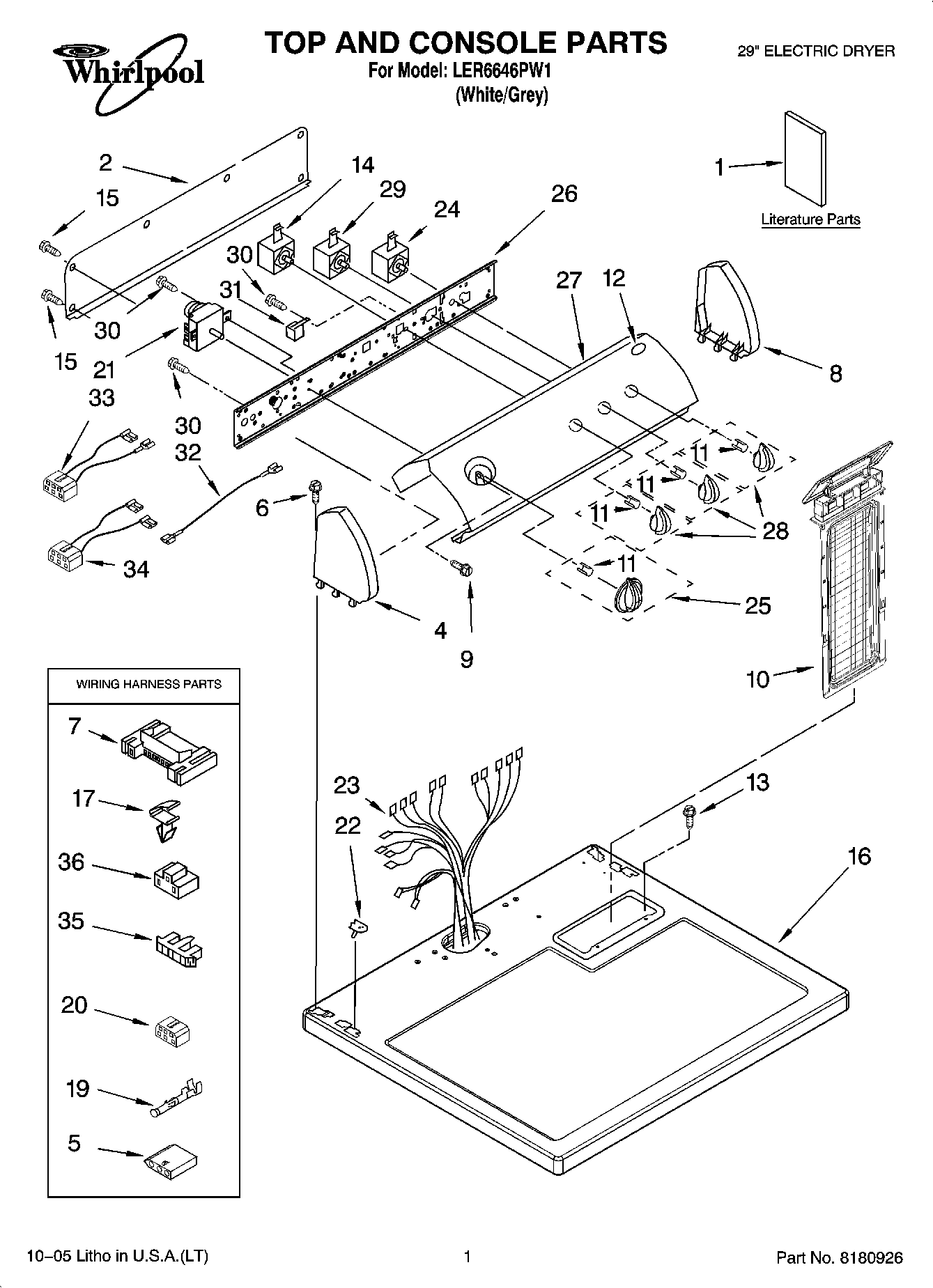 LER6646PW1 01 – TOP AND CONSOLE PARTS
