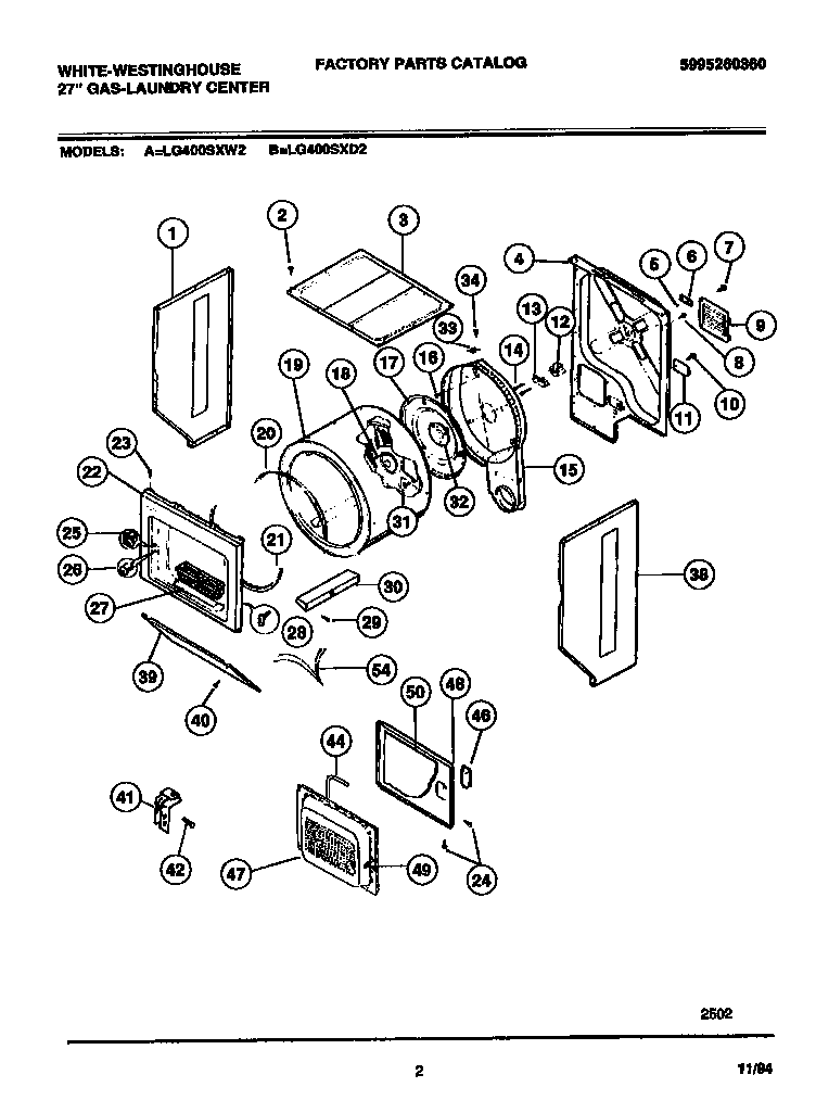 LG400SXW2 02 – DRYER – CABINET, DRUM, HEATER
