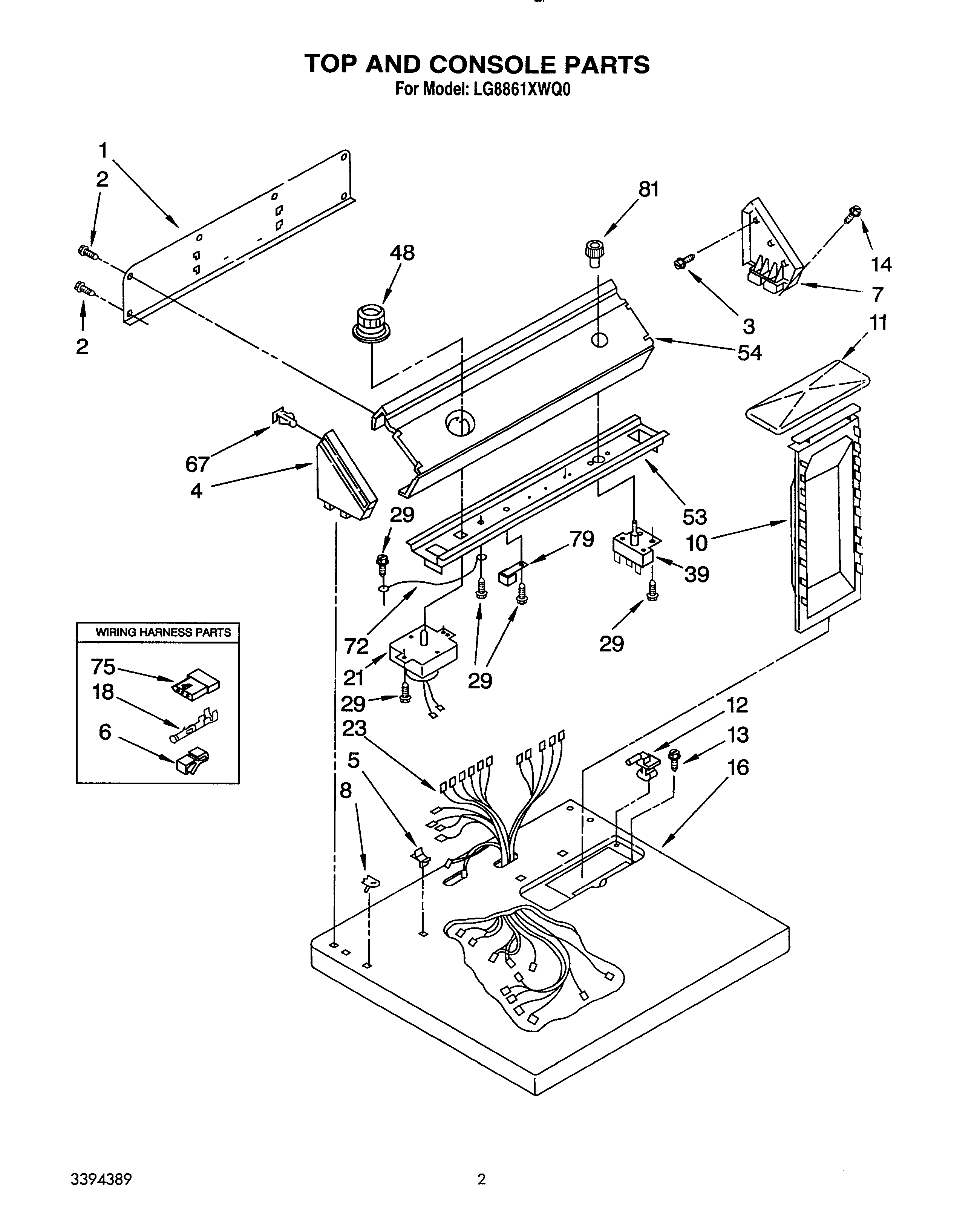 LG8861XWQ0 02 – TOP AND CONSOLE, LIT/OPTIONAL