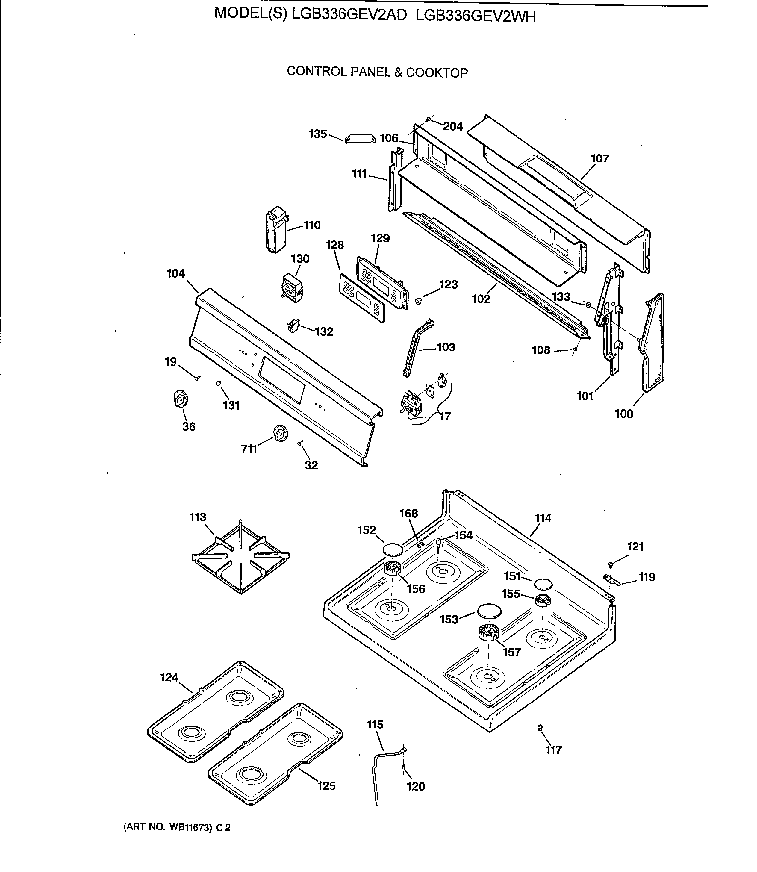 LGB336GEV2WH CONTROL PANEL & COOKTOP