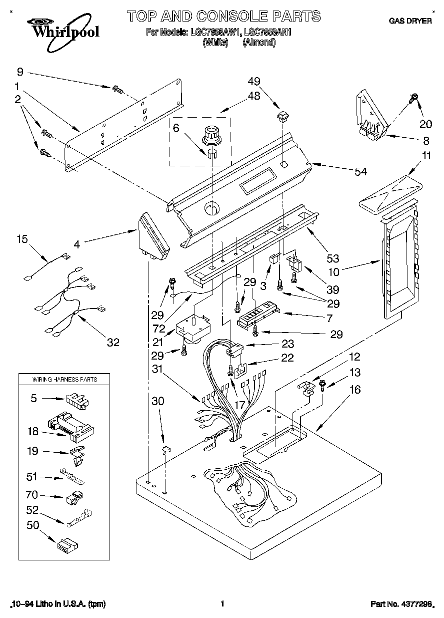 LGC7858AW1 01 – TOP AND CONSOLE, LIT/OPTIONAL