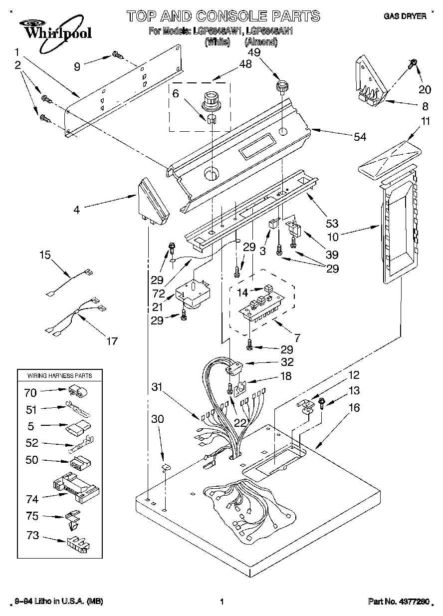 LGP6848AW1 01 – TOP AND CONSOLE, LIT/OPTIONAL