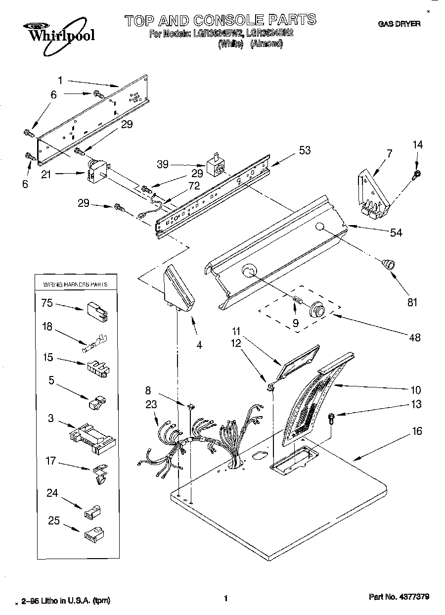 LGR3624BW2 01 – TOP AND CONSOLE, LIT/OPTIONAL