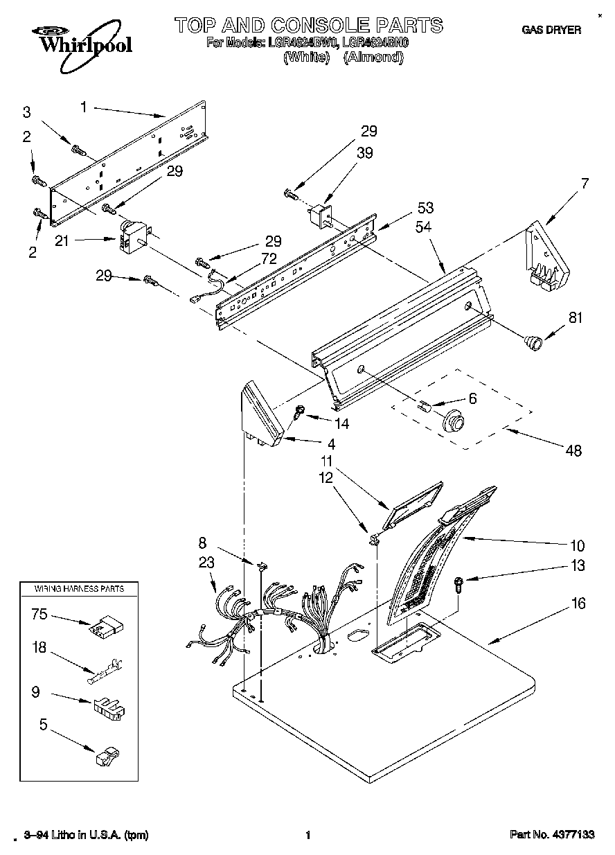 LGR4624BN0 01 – TOP AND CONSOLE, LIT/OPTIONAL