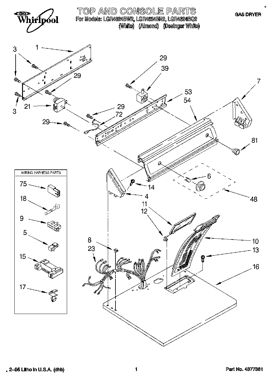 LGR4624BN2 01 – TOP AND CONSOLE, LIT/OPTIONAL