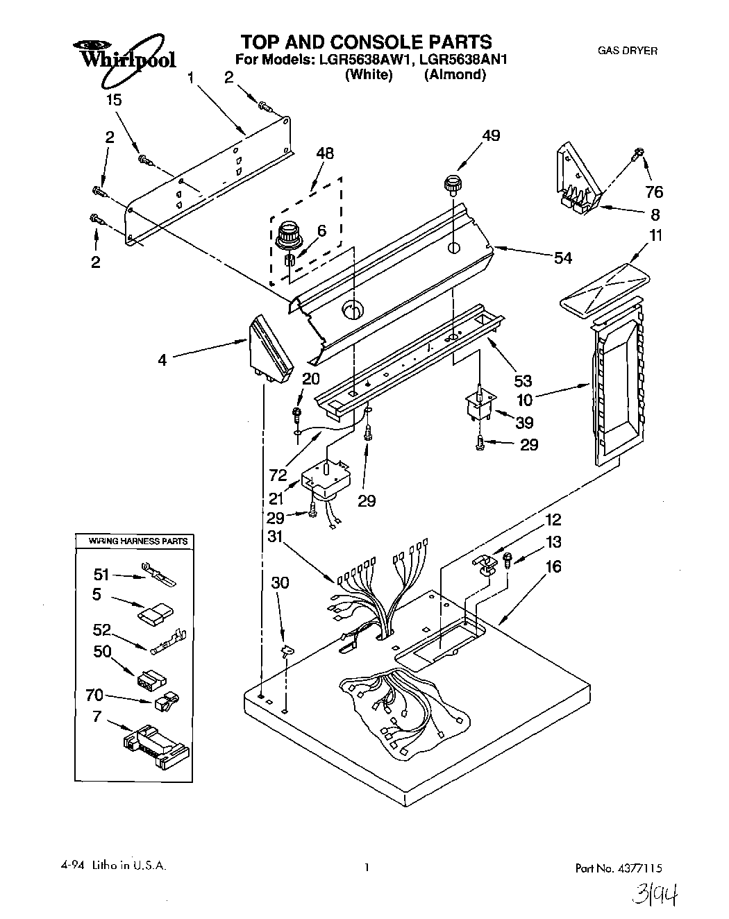 LGR5638AN1 01 – TOP & CONSOLE, LIT/OPTIONAL