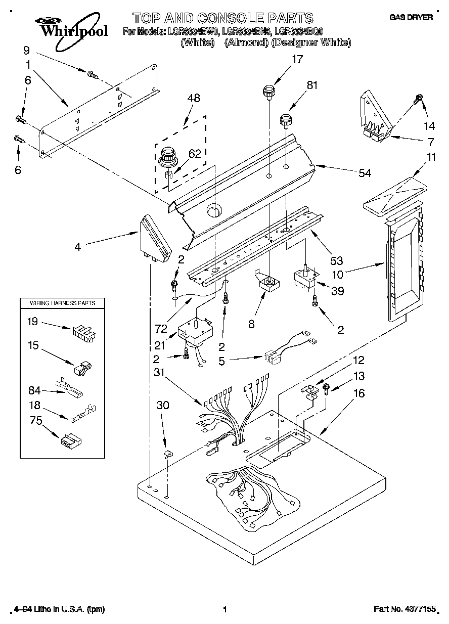 LGR6634BN0 01 – TOP AND CONSOLE, LIT/OPTIONAL