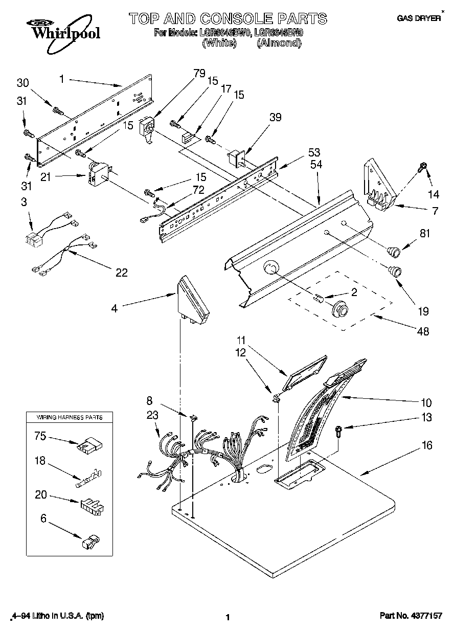 LGR6646BW0 01 – TOP AND CONSOLE, LIT/OPTIONAL