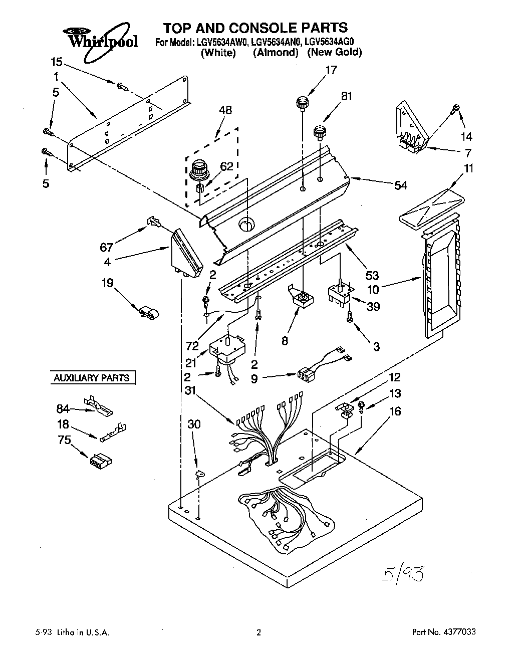 LGV5634AW0 01 – TOP AND CONSOLE, LIT/OPTIONAL