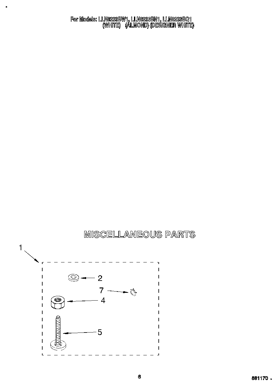 LLN8233BW1 04 – MISCELLANEOUSadmin2025-04-26T12:16:59+00:00LLN8233BW1 04 – MISCELLANEOUS ProductsPositionProduct1Miscellaneous Parts Bag2WP16123 Whirlpool Washer4WP3359452 Whirlpool Nut5WPW10001130 Whirlpool Leveling Leg7WP356138 Whirlpool Hose Clamp