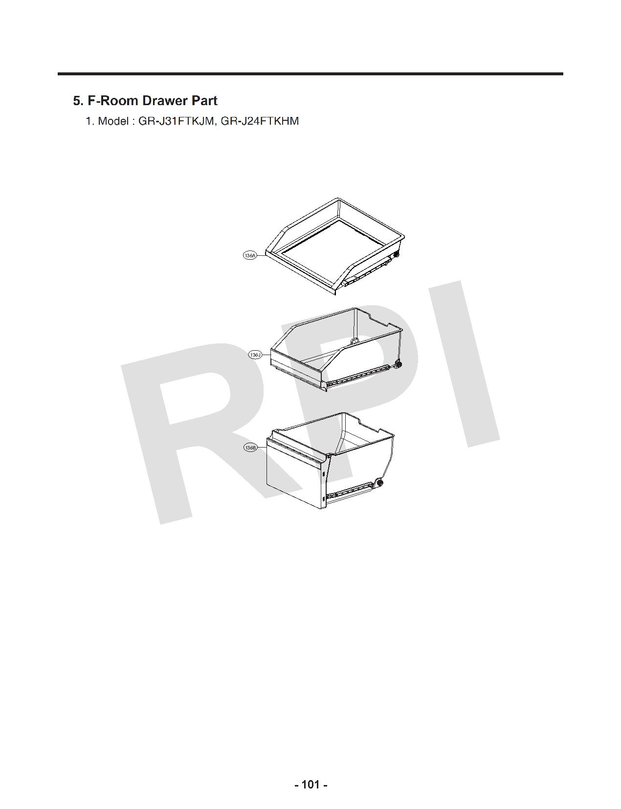 | 136J | AJP73654825 LG Drawer Assembly Tray |