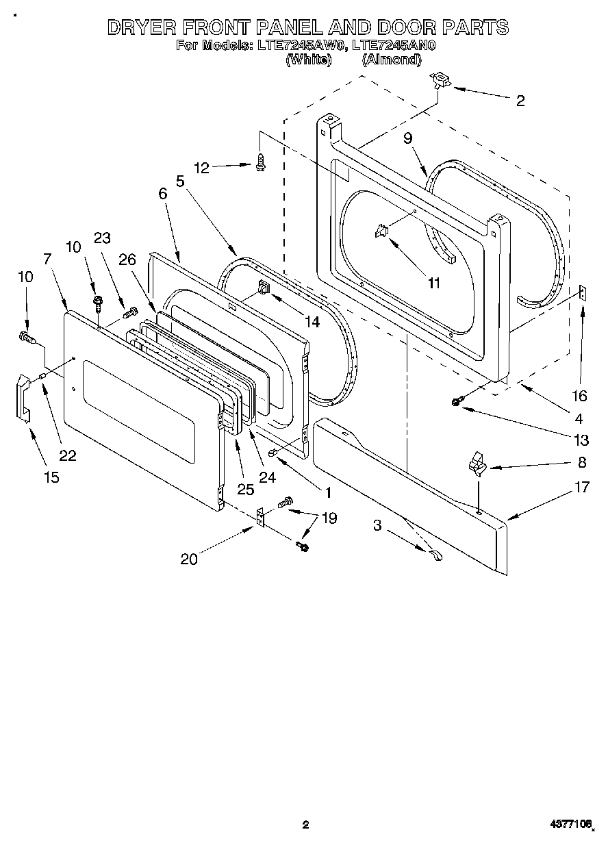 LTE7245AW0 02 – DRYER FRONT PANEL AND DOOR