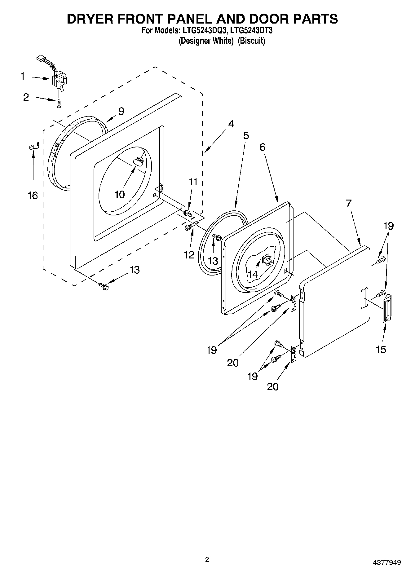 LTG5243DT3 02 – DRYER FRONT PANEL AND DOOR
