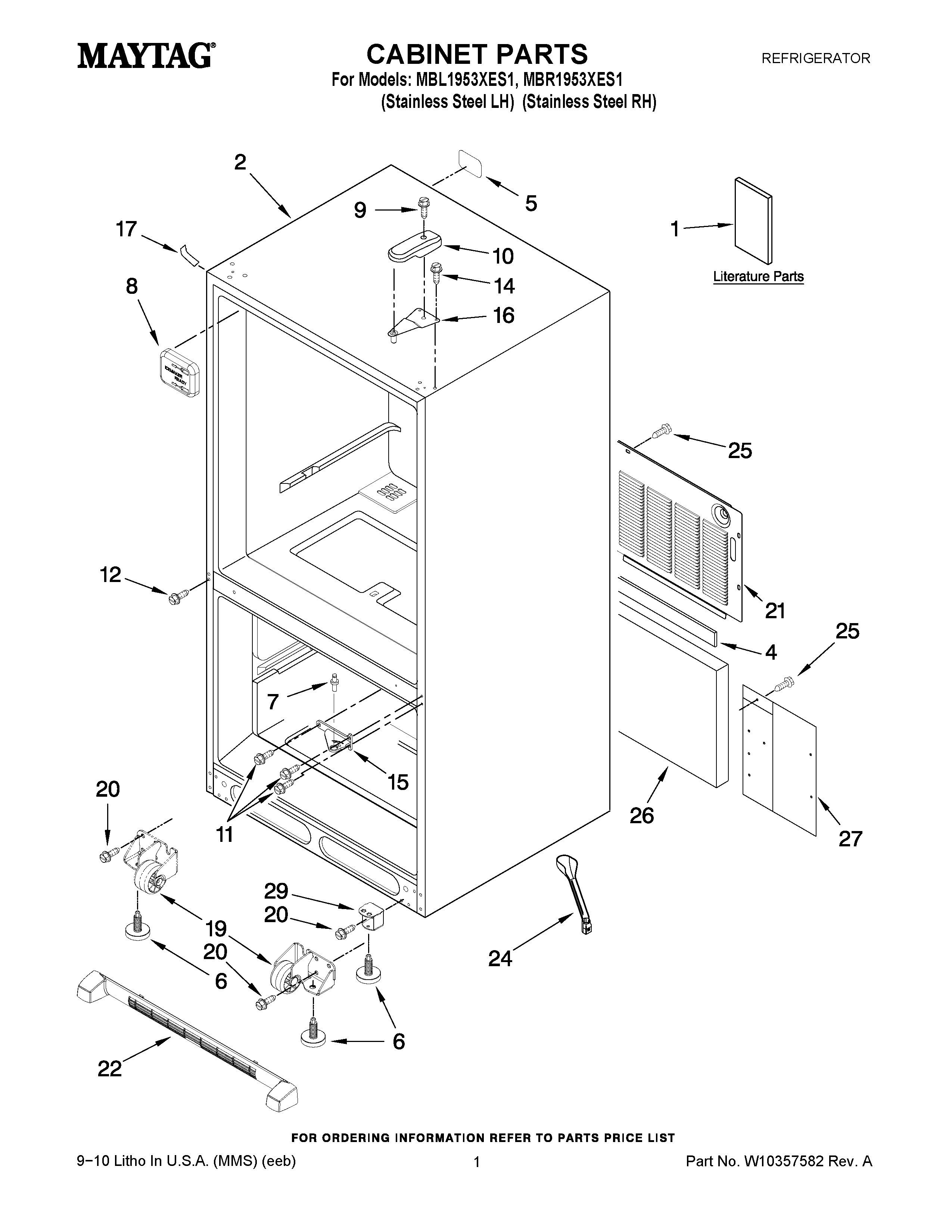 MBL1953XES1 01 – CABINET PARTS