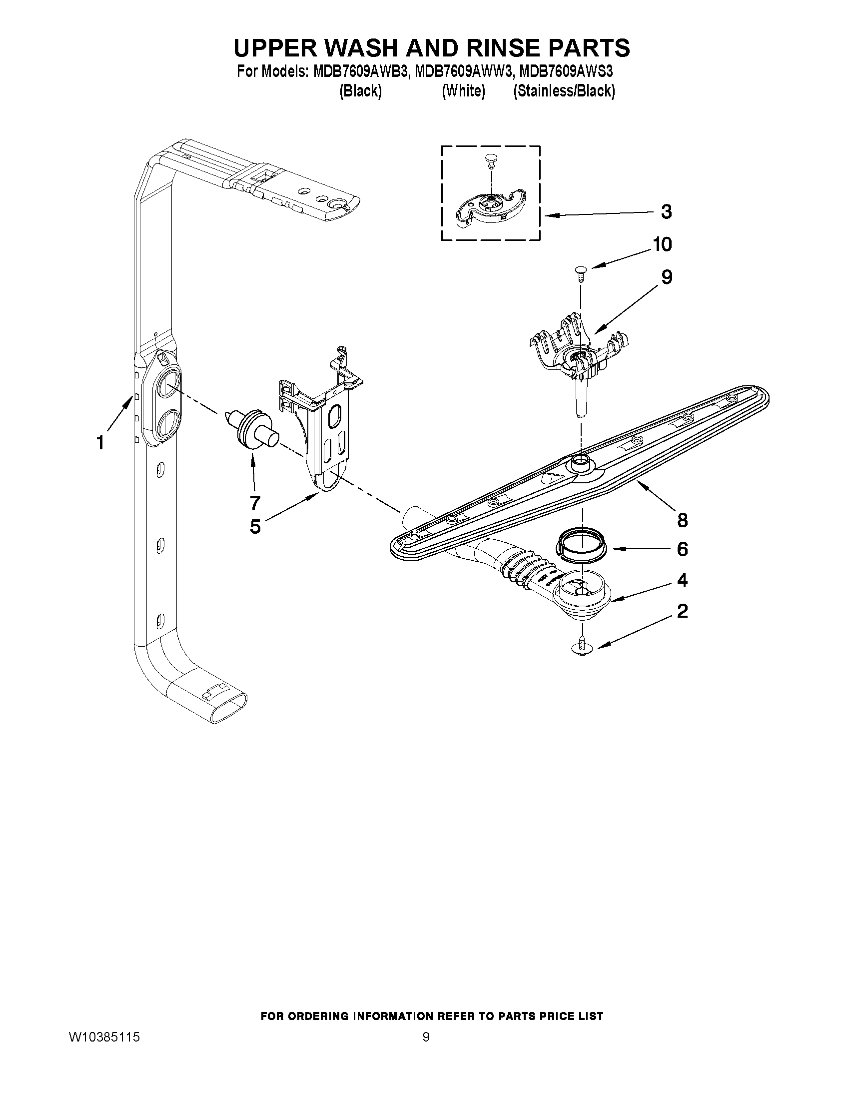 MDB7609AWB3 07 – UPPER WASH AND RINSE PARTS