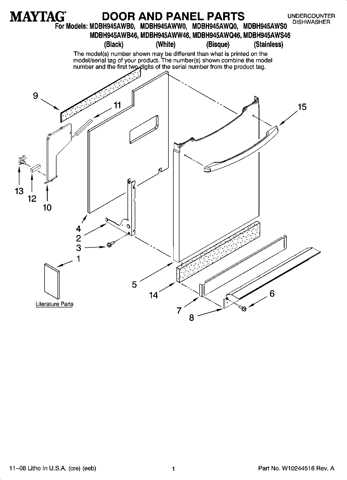MDBH945AWQ0 01 – DOOR AND PANEL PARTS