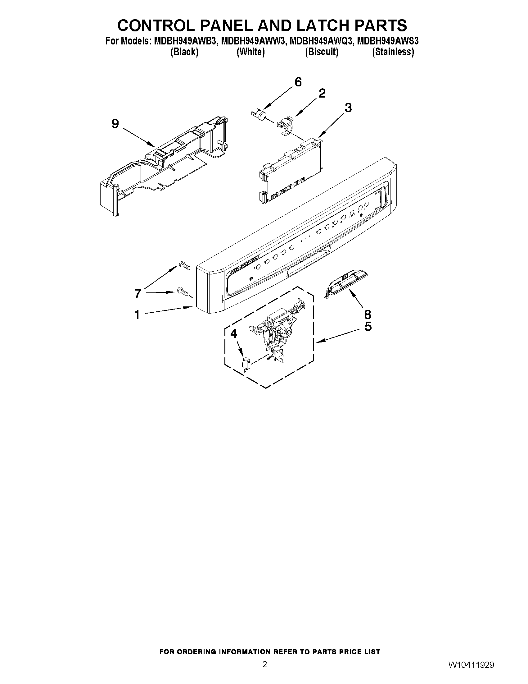 MDBH949AWB3 02 – CONTROL PANEL AND LATCH PARTS