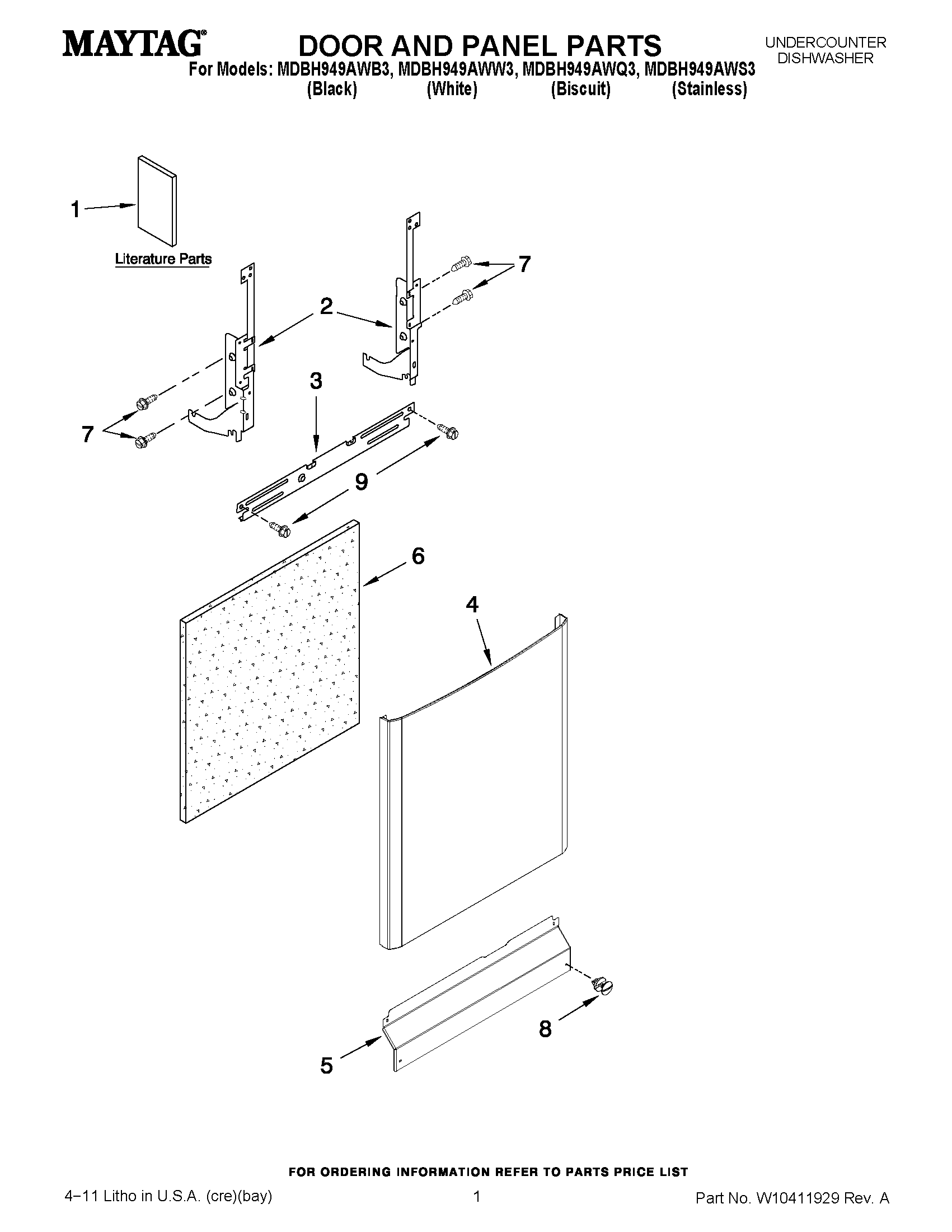 MDBH949AWW3 01 – DOOR AND PANEL PARTS