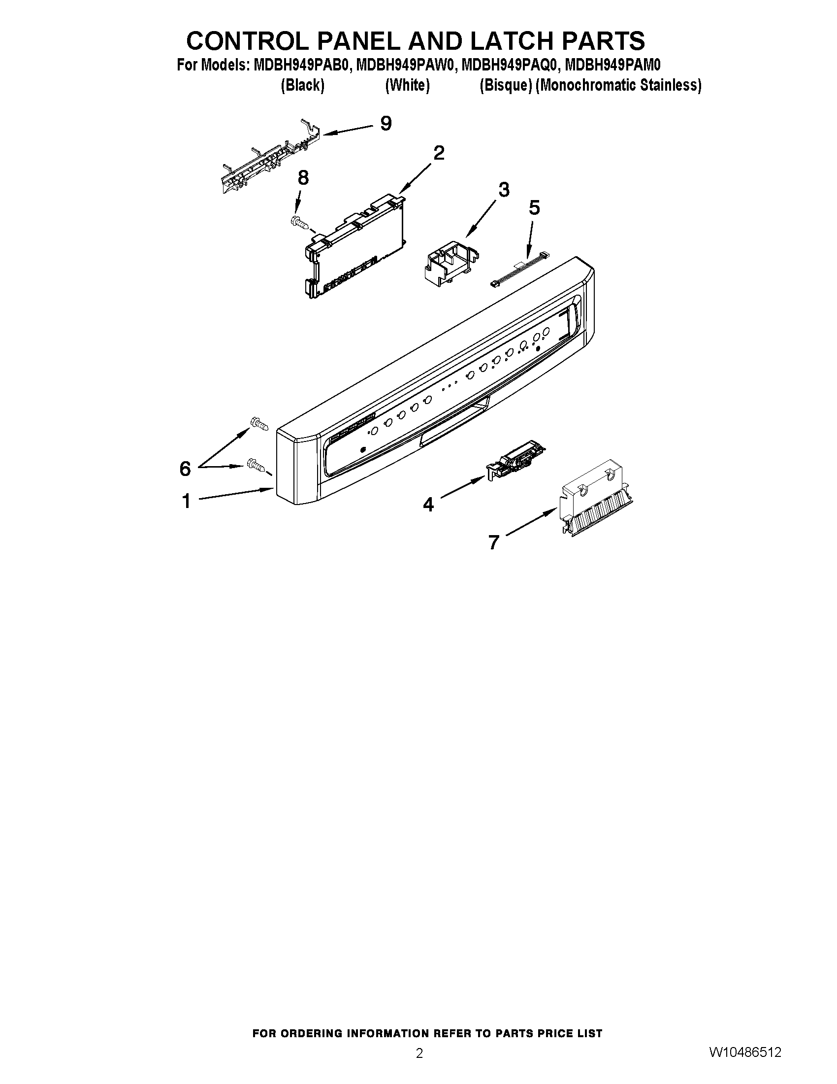 MDBH949PAQ0 02 – CONTROL PANEL AND LATCH PARTS